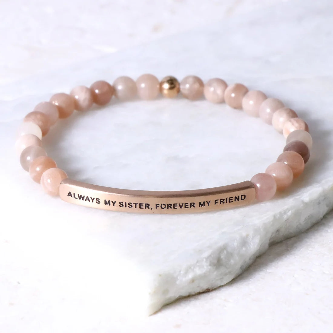 - Our bracelets are beautiful reminders that are crafted with earth stone beads and featuring a message of inspiration engraved on a stainless-steel bar. Wear them throughout the day to fill your mind with inspiration.