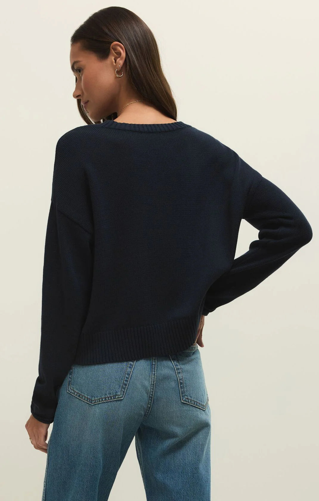 Après Beach Sienna Sweater in Eclipse: 100% cotton crew neck with long sleeves, lightweight construction, and a signature soft wash. Featuring the playful "Apres Beach" graphic for that laidback beachy charm.