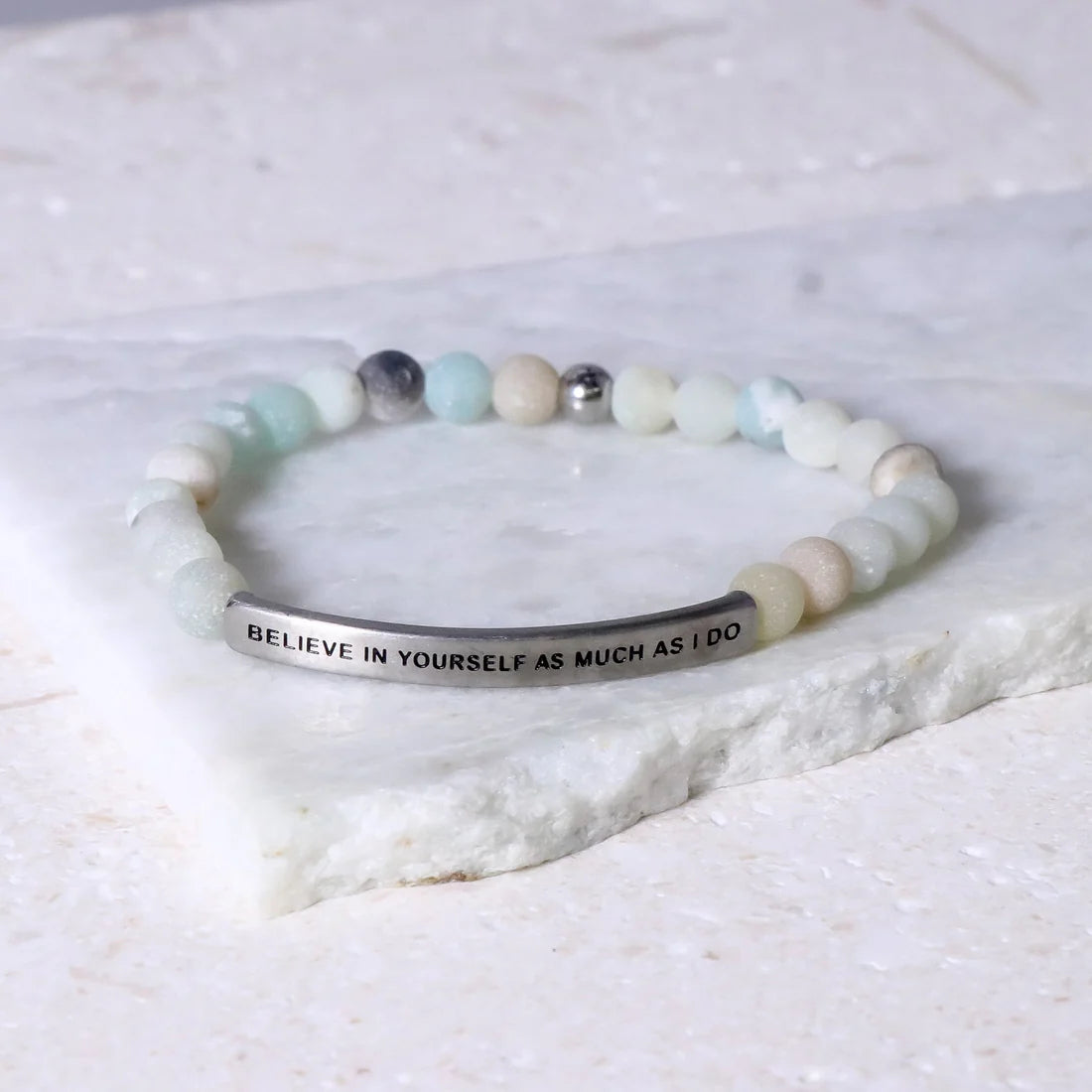 - Our bracelets are beautiful reminders that are crafted with earth stone beads and featuring a message of inspiration engraved on a stainless-steel bar. Wear them throughout the day to fill your mind with inspiration.
