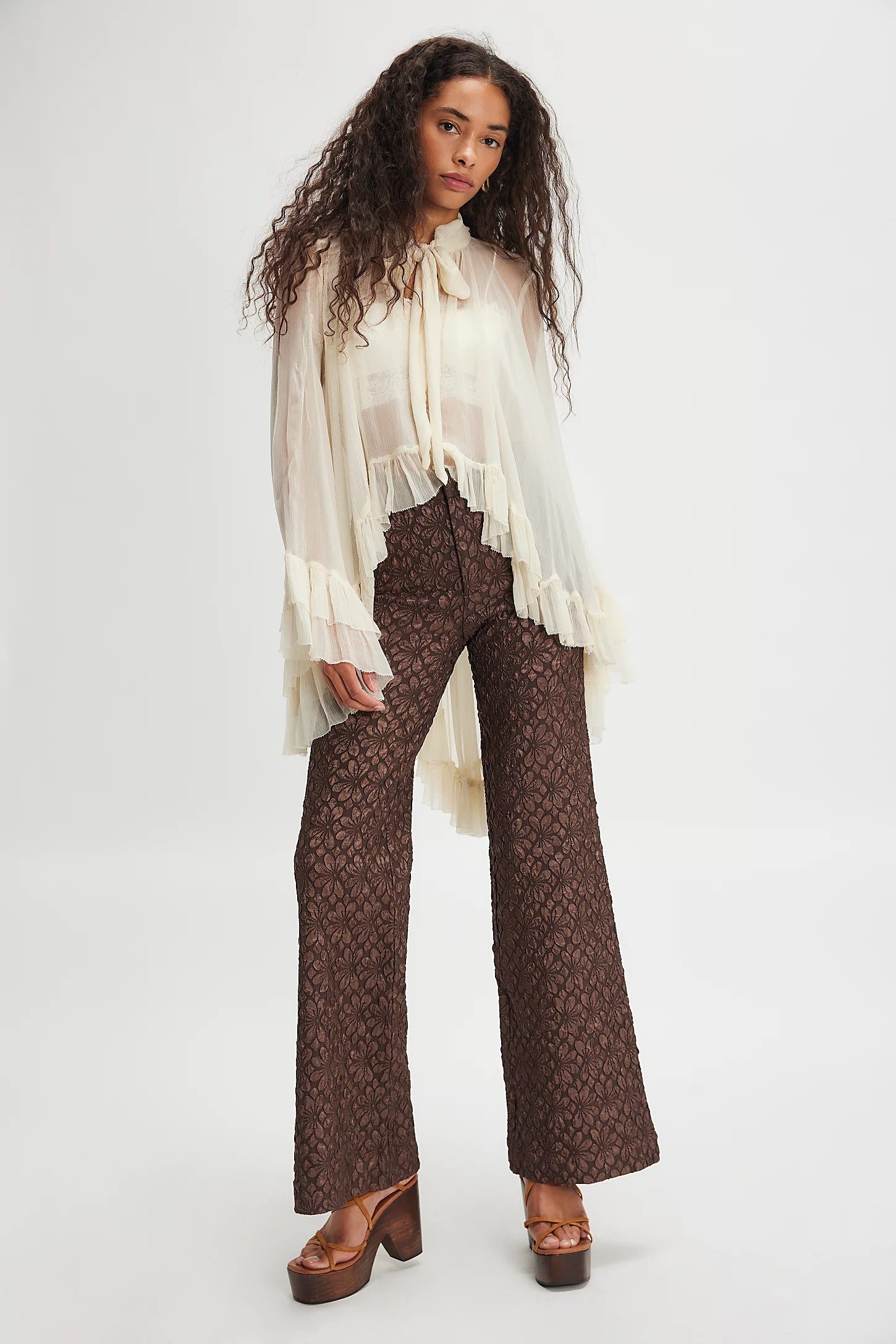 o fresh in floral, these bold pants feature a fun floral jacquard design in a flattering high-rise, wide-leg fit.